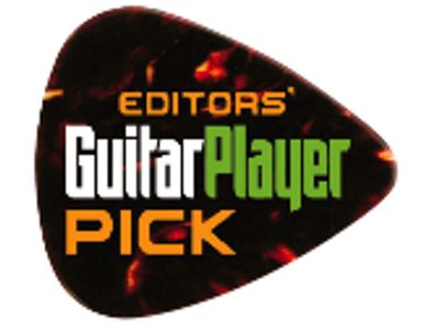 Long a notable builder in his own right, for the past few years Gene Baker has headed up the Premier Builders Guild team in Arroyo Grande, California, and this is the shop where the b3 Fire SL is made. At first glance this guitar might seem like just another double-cut Les Paul variant, but the shape shifting of the upper horn helps the b3 Fire SL hang differently, putting it in a playing position that I found more comfortable than the traditional Les Paul. The entire guitar is so beautifully put together that it just begs you to play it—and when you do, it rings sweet and true even before being plugged in. As the spec box indicates, the b3 Fire SL comprises many of the classic elements of the LP format, with quality components at every turn: TonePros hardware, Lollar Imperial pickups, a Tusq nut with Buzz Feiten Tuning System, and Dunlop Strap Loks. More fundamentally, the wood itself screams of similar quality and attention to detail. The softly V’d ’59 neck carve feels superb in the hand, with nary a ragged fret end, and a lightly chambered mahogany body keeps the overall weight equally appealing. Finally, a distressed “lemondrop” nitro finish, with cherry back and neck, seems the perfect way to show off the remarkable flame of this carved maple top. Fired up, the b3 presented ballsy, confident dual-humbucker tones, yet with the oft-surprising finesse of a great Les Paul when called for. It laid down anything in the broad range of classic rock just as effortlessly as you might suspect, yet when eased back, exhibited a depth and grace that is rare in guitars of this format. The neck pickup rolled effortlessly from warm, vocal, jazz tones to singing blues-rock, and there was even more versatility across the board when I popped up the neck-position Tone control for some single-coil action. But kick it to the bridge pickup, crank the amp, and the rock-all- day bluster is where this guitar really won me over. For its effortless playability and rich, muscular dual-bucker tones, the b3 Fire SL wins an Editors’ Pick Award.