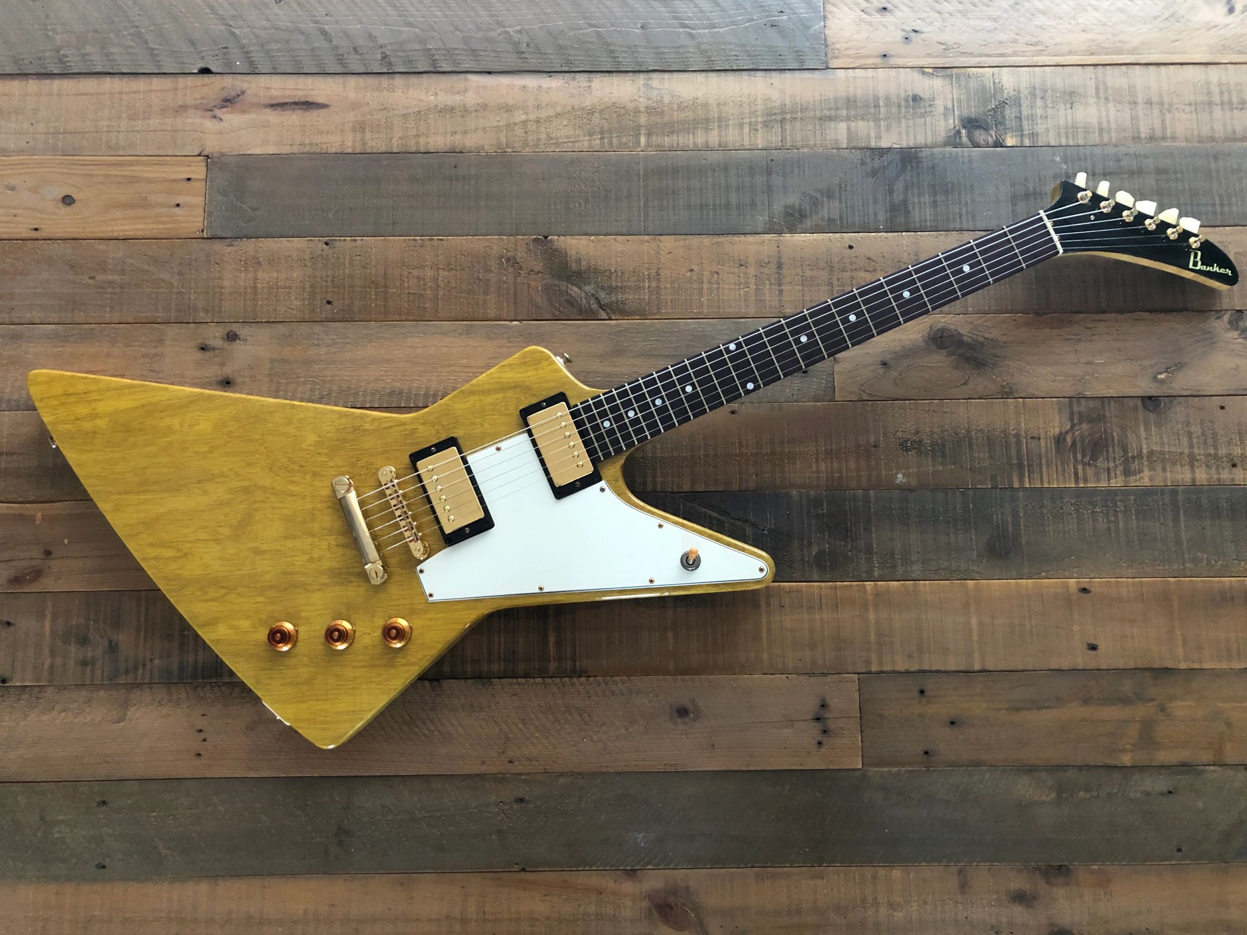 Unfortunately, time travel is not an option for the guitar acquisition experience. We can't go back to 1958 and place a custom order with Gibson for an Explorer with a Redwood top or jump back to 1963 and order a Firebird with a Pelham Blue top and natural back and sides. Banker Guitars gives us the next best option without disruption to the space time continuum. With an incredible assortment of old growth tonewoods Matt has stockpiled and continues to acquire, the options are immense. The hardware and pickup options come from the best available suppliers and Matt himself fabricates the hardware that someone else has yet to masterfully recreate. Denver Guitar Exchange is thrilled to go down the rabbit hole of traditional specs and creative spins on vintage spec combinations with Banker Guitars. Contact us today to hear about what builds we have in process from Banker Guitars.