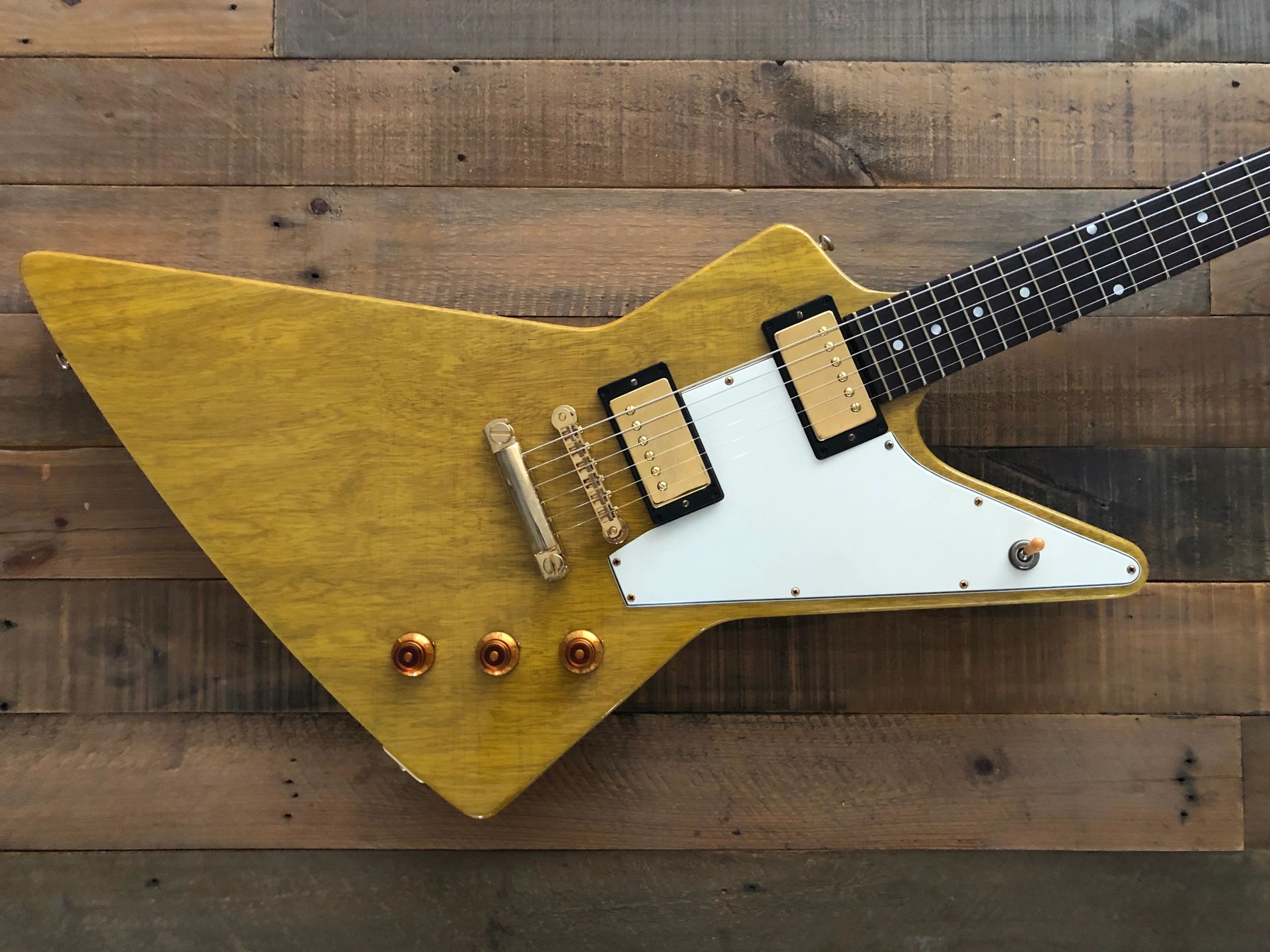 The impact of old growth tonewoods is a subject of much debate among guitar aficionados and enthusiasts (i.e. one more thing for all of us guitar geeks to bicker about). However, if you have ever played a vintage instrument, there is an unmistakable sound, look, and feel. This is extremely difficult to replicate and nearly impossible to do in a factory. If a luthier is to take on the task, they must craft the instruments from tonewoods as old as the instruments that made them legendary. The guitars must be constructed with the same handmade methods as the builders in Kalamazoo, MI back in the 50's and 60's. The iconic Firebirds, V's, Explorers, and Bursts sound and feel like they do due to numerous variables from the wood to the magnets, materials, and number of winds in the pickups, to hardware chosen for each model. Matt has painstakingly recreated all of these elements and accomplished an incredibly faithful homage to the guitars that have inspired all of us in the hands of our favorite players.